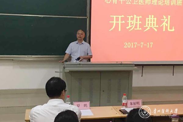 朱征明结合工作实例围绕贵州省传染病、地方病、慢性病及突发公共卫生事件等分析了贵州省公共卫生面临的形势。他对学员们提出四点要求:一是认真学习、切实提高理论水平和实践技能;二是努力通过执医考试;三是学习中实践、实践中学习;四是要有奉献精神。