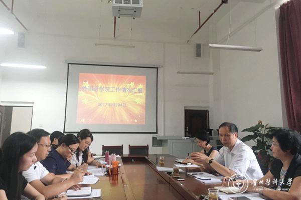 8月24日,校党委书记林昌虎、副校长黄亚励莅临外国语学院走访调研,校党委办公室主任陈颖陪同。外国语学院班子成员及干部、教师代表参加了工作汇报会。