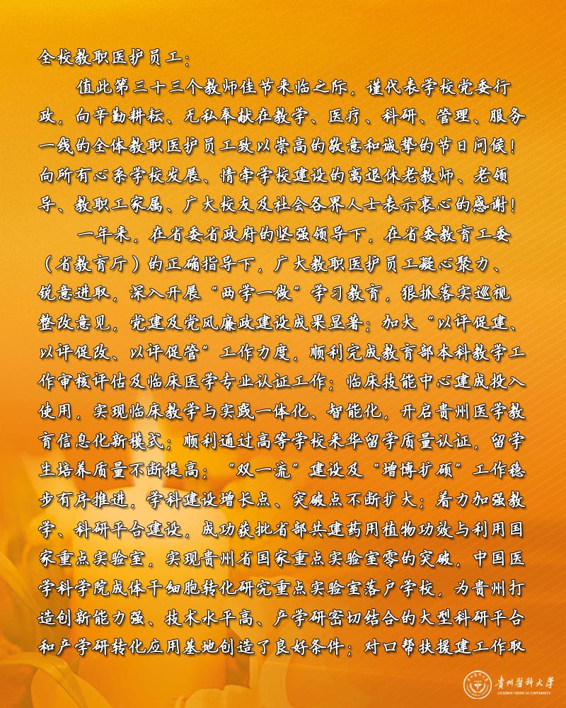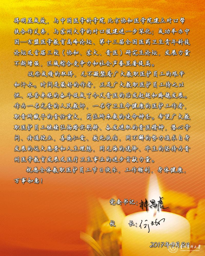 beat365唯一官方网站前身为1938年建立的“国立贵阳医学院”,是当时全国最早直属国家教育部的9所高等医学院校之一,学校始终坚持“文化建校、质量立校、人才强校、科研兴校”的办学理念,恪守“诚於己、忠于群、敬往思来”的校训,秉承“大医精诚”的贵医精神,立足贵州,服务全国,面向世界,为建成特色鲜明、同类先进、国内一流的百年医科大学而努力奋斗。
