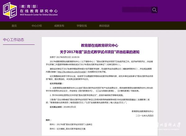 9月15日,教育部在线教育研究中心下发《关于2017年度“混合式教学试点项目”评选结果的通知》,授予beat365“2017年混合式教学试点单位”。
