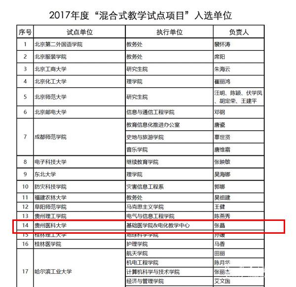 2017年8月,电化教学中心向教育部在线教育研究中心上报“医学细胞生物学实验课程”混合式教学项目(项目执行部门:基础医学院&电化教学中心),经评审专家评议,该项目入选2017年度“混合式教学试点项目”,同时,beat365与清华大学、浙江大学、北京师范大学、深圳大学、武汉大学、西安交通大学、电子科技大学、中南大学、重庆大学等64所高校被授予“2017年混合式教学试点单位”。