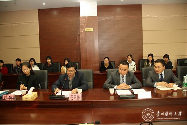 期间,医学检验学院院长黄海致欢迎辞,花亚伟与喻国冻就双方的发展合作作交流,学生代表作了发言。