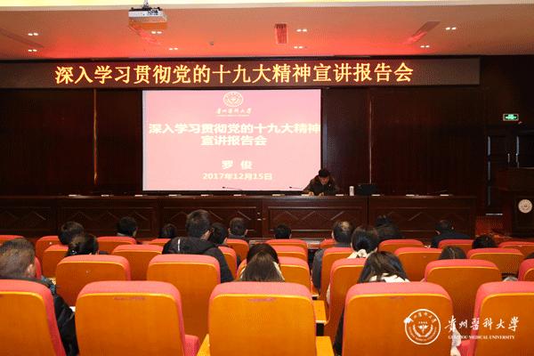 12月15日,副校长罗俊在道德讲堂作党的十九大精神宣传报告。教务处、设备处等部门副科级以上干部等100余人聆听。