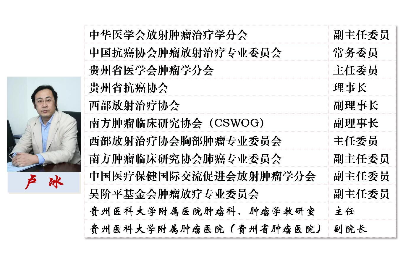 卢冰教授从事临床及相关研究工作近三十年,尤其对肺癌的放疗、化疗、分子靶向药物治疗及规范化综合治疗进行了深入研究。率先在省内开展肺癌等胸部肿瘤的三维适行、离体定向(X-刀)、调强、图像引导等多项国际先进的精准放射治疗新技术,应用化疗及分子靶向药物治疗的新成果,探索新的综合治疗模式。卢冰教授对晚期NSCLC(非小细胞肺癌)放疗干预的研究,使远处转移患者5年生存率由6%提高至10%,该成果在BMC Cancer及美国放射肿瘤学官方杂志Int J Radiat Oncol Biol Phys发表,并作为当期杂志的Issue Highlights,美国加州大学圣迭戈分校Moores肿瘤中心肿瘤放射学教授Catheryn M. Yashar评价:“This kind of strategy may have some role in palliationat present, but will likely become more important if systemic therapy could improve”。卢冰教授对IV期NSCLC患者接受早期放疗干预的研究被国内最权威放射肿瘤学期刊《中华放射肿瘤学杂志》以“研究专题”形式刊登,选为2011年度“重要研究号”,放射肿瘤学泰斗殷蔚伯教授为此撰写编者按,并入选《国家卫生和计划生育委员会住院医师规范化培训规划教材•肿瘤放射治疗学》。