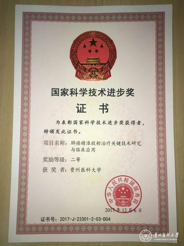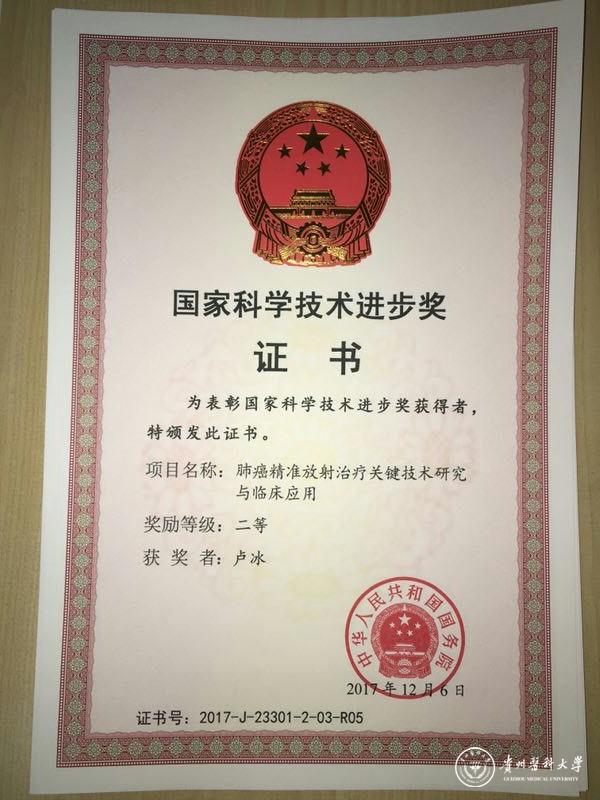 1月8日,2017年度国家科学技术奖励大会在北京人民大会堂隆重举行。beat365卢冰教授参与完成的《肺癌精准放射治疗关键技术研究与临床应用》项目,荣获国家科技进步二等奖。
