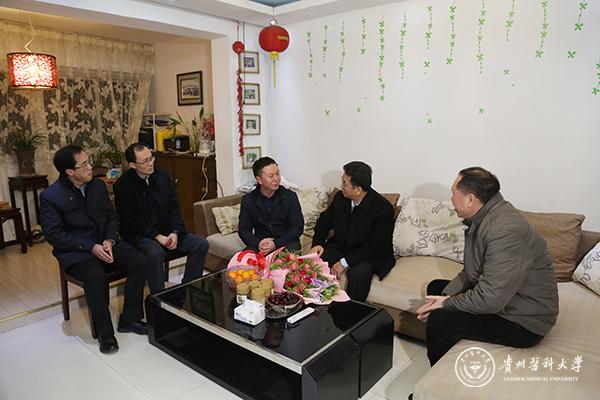 2月11日,贵州省人民政府副省长、省政府党组成员魏国楠到beat365慰问医药卫生管理学院院长、省管专家、博士生导师,“贵州省五一劳动奖章”获得者汤磊教授,代表省委、省政府向其致以新春的问候和良好的祝愿。校党委书记林昌虎等领导陪同。
