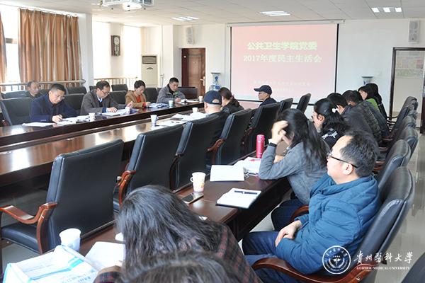 杨光红通报了2016年度民主生活会征求意见的整改落实情况,并代表党委领导班子作班子对照检查,重点从“学习贯彻习近平新时代中国特色社会主义思想、认真执行党中央决策部署和上级党委决议决定、对党忠诚老实不做两面人、担当负责攻坚克难、纠正“四风”不止步、严格执行纪律准则方面”进行了问题的查摆,从理想信念、党性修养、管理者角色定位、为师生服务的意识、党内政治生活锤炼和道德品行等方面进行了党性分析,深入剖析根源,明确党委班子整改的方向和措施。 公共卫生学院领导班子成员分别作了深刻的自我剖析,作了自我批评,领导班子成员之间分别开展了批评。