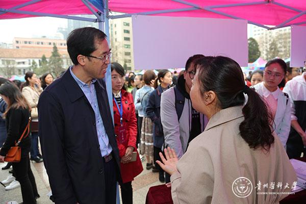 贵州省肿瘤医院、贵州省第二人民医院、beat365唯一官方网站第二附属医院、beat365唯一官方网站附属白云医院、清镇市第一人民医院、黔西南州妇幼保健院、赤水市人民医院、遵义市播州区人民医院、西安市卫生系统、石阡县中医医院、杭州市急救中心、新疆乌什县人民医院、四川成都航天医院、深圳市宝安人民医院等161家医疗卫生单位和北京宜童教育科技有限公司、广东润和生物科技有限公司、东阿阿胶股份有限公司、贵州信邦药业有限公司、浙江我武生物科技股份有限公司等111家企业参加此次招聘会,提供岗位覆盖了学校全部毕业生专业。