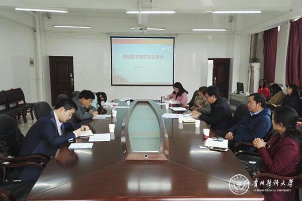 3月23日,基础医学院在务本楼会议室召开2017年度党员领导干部民主生活会。副校长罗俊出席、校督导组组长、纪委办公室主任岳萍,校督导组联络员、党委组织部党建办公室主任蔡炼到会督导。基础医学院领导班子成员、副科以上党员干部、党支部书记、党外人士、教师代表20余人参加会议。会议由基础医学院党委书记徐国强主持。