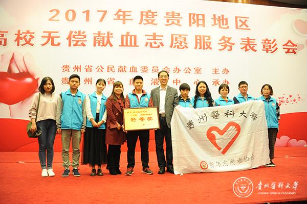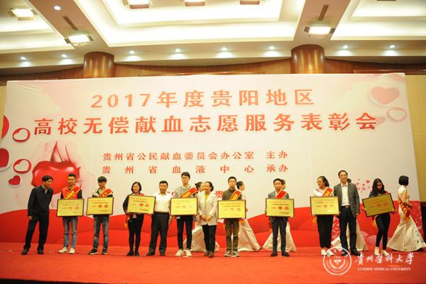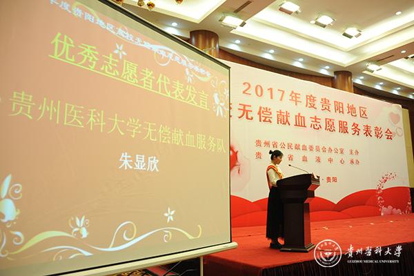3月31日,由省公民献血委员会办公室主办,血液中心承办的贵阳地区高校无偿献血志愿服务表彰会在贵州饭店国际会议中心举行。beat365党委副书记战勇出席,并为高校无偿献血志愿服务先进集体颁奖。beat365麻醉学院朱显欣同学代表全体获奖优秀志愿者发言。