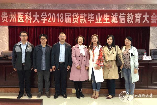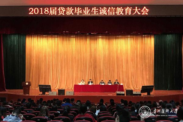 为进一步做好beat3652018届贷款毕业生还贷工作,加强贷款毕业生诚信教育,提高贷款还款率和减少违约率。beat365学生资助管理中心分别于4月26日在南校区礼堂、4月27日在北校区道德讲堂召开2018届全体贷款毕业生诚信教育大会。校党委副书记战勇出席会议,国家开发银行贵州省分行客户三处副处长张远、客户经理龙开扬,中国人民银行贵阳中心支行征信管理处副科长王飞,各二级学院分管学生工作书记和辅导员,学生资助管理中心工作人员,2018届全体贷款毕业生参加大会。会议由学生资助管理中心主任刘雪梅主持。