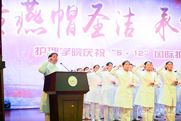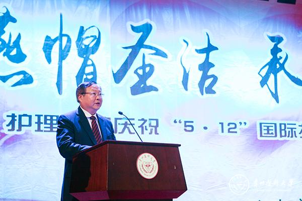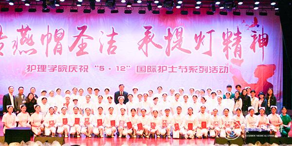 为庆祝即将到来的国际护士节,5月9日,护理学院在南校区礼堂举行了“喜迎八十华诞庆祝‘5•12’”系列活动。校党委副书记、附属医院党委书记刘兴德,党委宣传部部长杨毅,学生工作处副处长肖绚出席。