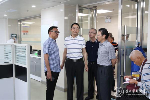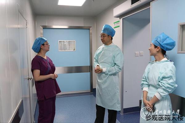 郑国彪一行实地参观了口腔医院手术室、消毒供应中心、VIP诊室等相关科室,并在医院大楼前合影留念。
