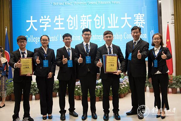 5月18日,第十一届中国--东盟教育交流周“一带一路”大学通识教育论坛之大学生创新创业大赛在铜仁学院举行。beat365基础医学院代表队荣获二等奖,代表队成员为基础医学院2016级医学实验技术专业胡盼、李志阳、梁政伟。比赛前,副校长罗鹏看望指导教师及学生团队,听取参赛方案并提出中肯的指导意见。