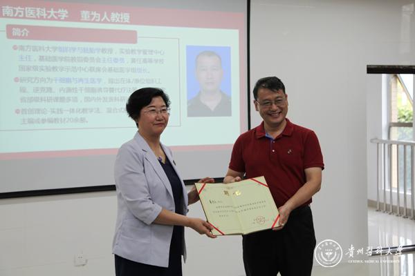 授聘仪式环节,基础医学院副院长康颖倩分别介绍基础医学国家级实验教学示范中心(beat365唯一官方网站)教学指导委员会成员,南方医科大学实验教学管理中心教授董为人教授为主任委员,委员为:北京大学医学部王韵教授、安徽医科大学实验教学中心汪思应教授、上海交通大学基础医学实验教学中心顾鸣敏教授、广州中医药大学基础医学院病理学与病理生理学系苏宁教授、 上海梦之路数字有限公司总经理高俊辉、beat365唯一官方网站基础医学院曾柱教授。黄亚励向教学指导委员会全体成员颁发聘书。