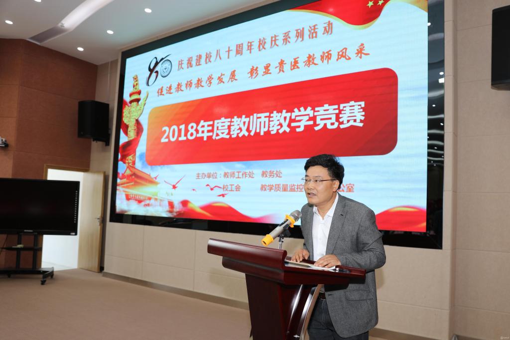 吕保平致辞。他指出学校高度重视和大力支持教师教学竞赛,学校讲课比赛是学校内涵建设的重要体现,是提升教学质量的重要环节,要求青年教师要重视教学方法改革,积极运用现代教育技术与方法,将讲课的科学性、艺术性和逻辑性有机地结合在一起,不断提升教学效果。