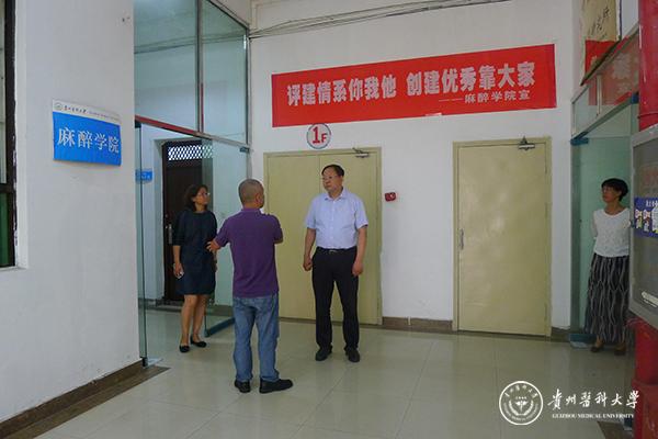 刘兴德在调研中还走访了麻醉学院办公场地,对正在筹划装修的模拟实验室装修设计方案和规划提出了建设性意见。