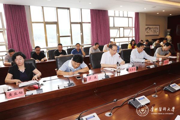 林昌虎强调,习近平扶贫思想,是马克思主义反贫困理论中国化的最新成果,是习近平新时代中国特色社会主义思想的重要组成部分,为我国打赢脱贫攻坚战提供了行动指南和根本遵循,为全球贫困治理提供了“中国智慧”。全校各单位(部门)要深入贯彻落实习近平扶贫思想和党中央、国务院关于打赢脱贫攻坚战三年行动的各项任务要求,全面执行省委十二届三次全会作出的“打好‘四场硬仗’,扎实抓好‘五个专项治理’,着力做好‘四个聚焦’,深入推进‘一场产业革命’,打好发起总攻夺取全胜的关键战役”重大决策部署,主动参与贵州“大扶贫、大数据、大生态”“三大战略行动”,弘扬践行新时代贵州精神,全面助力脱贫攻坚工作。林昌虎要求,一要牢记教育教学主责,抓好招生工作和人才培养工作,努力为地方脱贫攻坚提供智力支持和人才保障。二要进一步提升医疗卫生水平,做好做实医联体建设工作,用心服务地方医疗卫生事业发展。三要进一步加强校地合作和校企合作,采取有效举措推动科研成果真正服务于脱贫攻坚。四要进一步加强定点帮扶工作,深入推进校农对接帮扶、驻村帮扶、基层医疗卫生人才培养等各项精准扶贫部署落地结果。