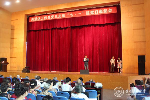 离退休工作处党总支6月29日在北校区大礼堂举行“庆七一、迎校庆”为主题的离退休党总支表彰大会暨离退休老同志文艺联欢会。副校长黄亚励,校党委宣传部、校团委负责人,离退休处全体工作人员以及部分离退休党员和部分离退休教职医护员工近300人参加会议。表彰会由离退休处党总支书记仇春鸣主持。