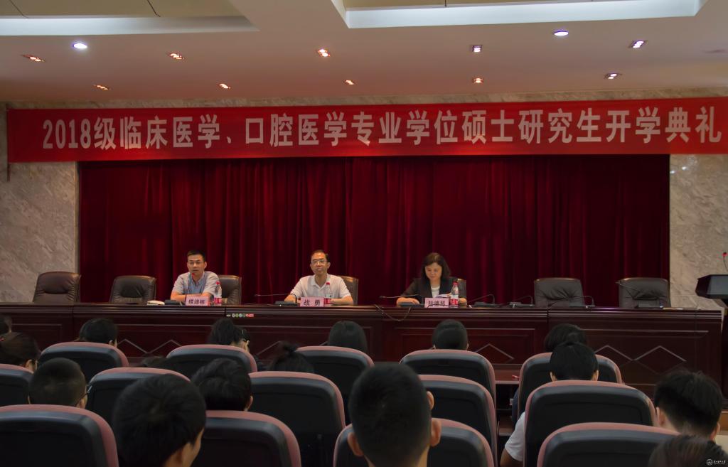 7月13日,beat3652018级临床医学与口腔医学专业学位硕士研究生开学典礼在北校区道德讲堂举行,校党委副书记战勇出席,研究生院副院长楼迪栋主持,研究生院常务副院长陆德琴及党委研工部、研究生院全体人员参加。