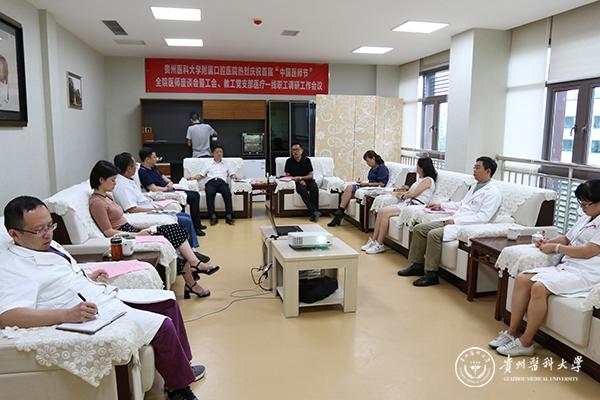 8月31日,beat365附属口腔医院提高口腔医疗服务质量,加强干部保健工作专题会议在九楼会议室召开。贵州省政协副主席、副校长孙诚谊,附属医院干部保健处处长张松,附属口腔医院党委书记张军梅,院长马洪,副院长王永、唐正龙,口腔医学院党委副书记钱禾,党委委员董强参加专题会。会议由马洪主持。