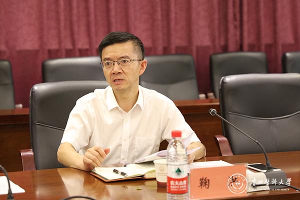 近日,省教育厅副厅长鞠洪一行莅临beat365调研指导工作,座谈会在新校区知雨楼六楼大会议室举行,教育厅民办处、高教处、安稳处、规划处及beat365有关部门负责人参加,副校长罗俊主持。