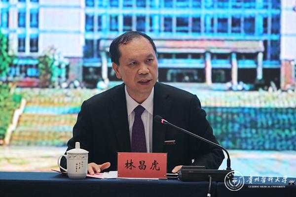 林昌虎在致辞中指出,建校八十年来,学校秉承校训精神,坚持博采众长、融汇百家的办学办医方针,以培养高素质医药卫生人才为己任,以守护贵州人民生命健康为使命,以推动贵州经济社会发展为导向,积极参与“大扶贫”、“大生态”、“大数据”战略行动,在人才培养、学科建设、科学研究、社会服务、文化传承创新、国际交流合作等各个方面取得了长足进步,为贵州乃至西部医疗卫生事业的发展做出了积极贡献。
