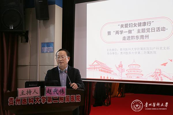 刘文表示,通过妇产支部“关爱妇女健康行”党建主题活动,在增进兄弟单位友谊的同时,也充分利用了附院优质医疗资源更好地为黔东南州老百姓服务。他给大家带来题为《切实加强党建工作,引领医院健康发展》的讲座,生动、系统地交流学习《关于加强公立医院党的建设工作的意见》的心得体会。从“院长负责制回归到党委领导下的院长负责制;党的基层组织战斗堡垒作用进一步加强;党务工作与业务工作走向深度融合”这三大板块进行了深入浅出的解读,引导大家看历史、辨本质、认现象,并鼓励大家充分发挥党员先锋模范带头作用,力争业务水平第一,为学科发展贡献力量。强调公立医院党委在医院管理中“把方向、管大局、作决策、促改革、保落实的领导作用”,深入贯彻落实“党领导一切”的思想。强调在加强支部建设过程中,党支部在科室业务发展、人才引进、薪酬分配、职称晋升、评优评先以及设备配置等方面在促进学科发展中的领导作用。
