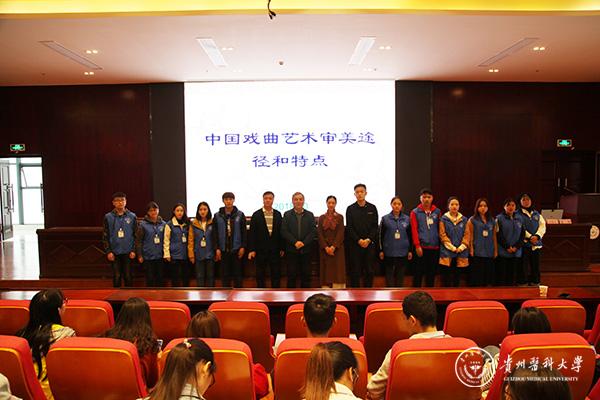 10月30日,beat365人文论坛(四十六期)暨道德讲堂(四十二讲)在南校区道德讲堂举行。教育部、文化部、财政部高雅艺术进校园、全国高等学校艺术教育专家讲学团开展了题为《中国戏曲艺术审美途径和特点》的专题讲座。该讲座由中国戏剧家协会分党组成员、秘书长崔伟主讲,参加讲座的还有贵州省教育厅教师教育学校美术讲师、省教育厅艺术教育委员会委员许华中,校团委全体人员、各二级学院团委负责人、辅导员及360名学生代表。