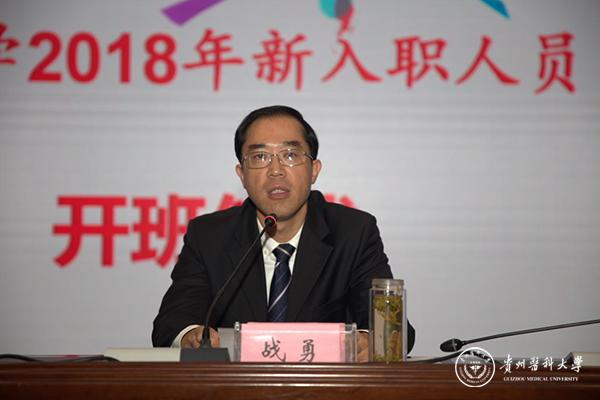 10月26日,新进教师岗前培训在南校区道德讲堂举行。开班典礼由教师工作处处长席晓岚主持。校党委副书记战勇出席并作讲话。战勇代表学校党委和行政欢迎新进教师加入贵医大家庭,同时也对新进教师提出不断学习、终身学习的要求。