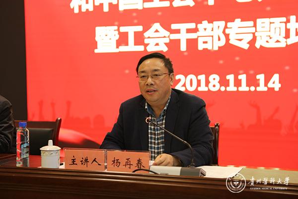 会上,杨再春结合教育系统工作实际,紧扣习近平总书记关于工人阶级和工会工作的重要论述以及在全国教育大会上的重要讲话精神,围绕中国工会十七大盛况和成果、过去五年工会工作的重要成就与今后五年工会工作的主要任务等方面,进行了全面细致的传达和深入浅出的宣讲。