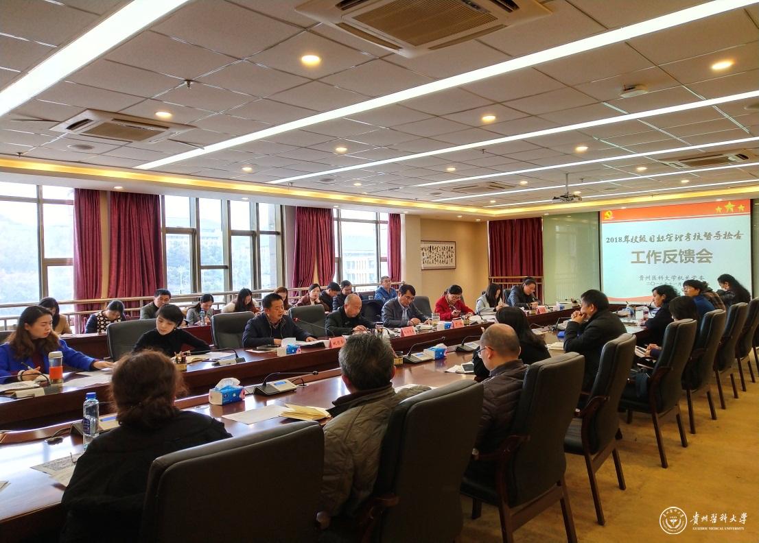 机关党委副书记张雪晴作目标考核督导检查工作情况介绍,督导检查组组长、运动与健康学院党委书记姚思勤、科学技术处副处长胡晓霞、教师工作处处长席晓岚分别就各组的督导检查考核情况作介绍,机关党委书记邓舟作督导检查工作总体情况反馈。