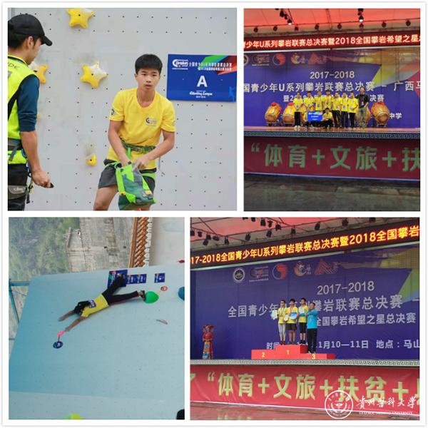 11月9日,全国青少年U系列攀岩联赛总决赛暨2018全国攀岩希望之星总决赛在广西马山举行,此次beat365国家攀岩集训队(贵州)共派出9名小队员参赛。运动员杨谨屹一路过关斩将,通过激烈拼搏,打破全国青少年速度标准道全国纪录,为学校争得了荣誉。