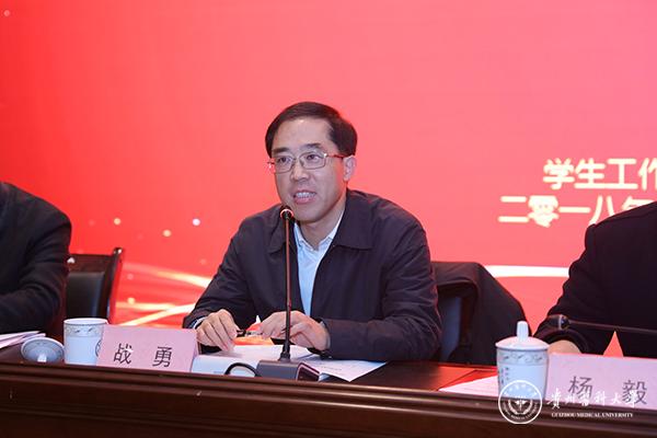 会上,战勇代表学校向在学生工作中付出辛勤努力的同志们表示衷心感谢,向获表彰的先进个人和获立项授牌的单位表示祝贺。他强调,学校高度重视辅导员队伍建设,积极拓展辅导员发展平台,同时,希望全体辅导员要紧密结合新时代的新要求,坚持“立德树人”,践行“四个回归”,注重自身的专业化、职业化发展。希望第一批思想政治教育工作教育基地先行先试,形成经验,努力把创新基地打造为示范点、蓄水池、成果库。希望杏林医语辅导员工作室积极开展辅导员工作研究与实践创新,打造核心团队,形成可操作、可示范、可推广的工作精品和实践成果。