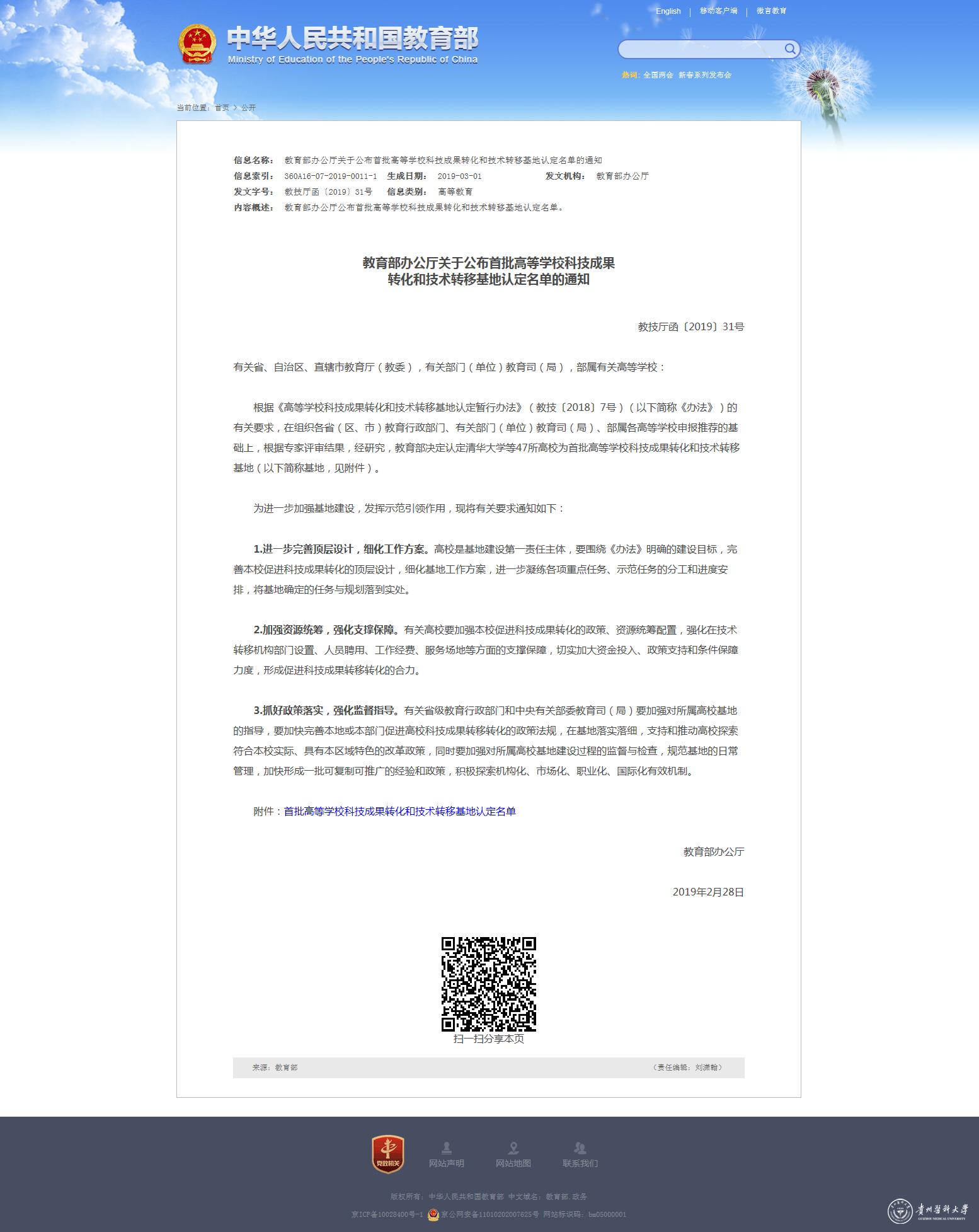 3月1日,教育部公布了首批高等学校科技成果转化和技术转移基地认定名单,清华大学等22个中央所属高校、首都师范大学等25个地方高校获得首批高等学校科技成果转化和技术转移基地认定。beat365成为贵州省唯一入选高校,同时也是全国唯一当选的医科院校,beat365科技成果转化与技术转移工作获得了教育部高度的认可与肯定。