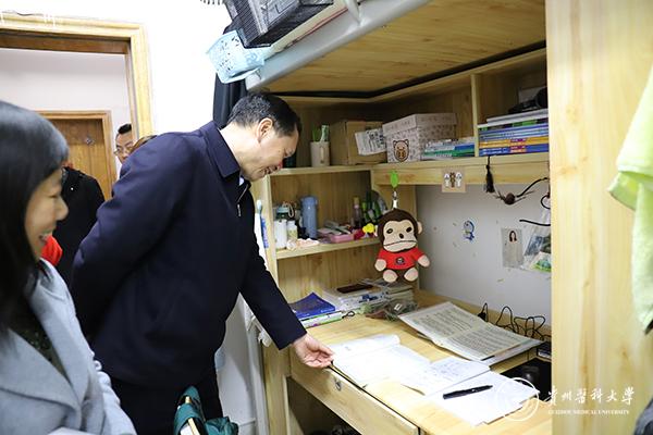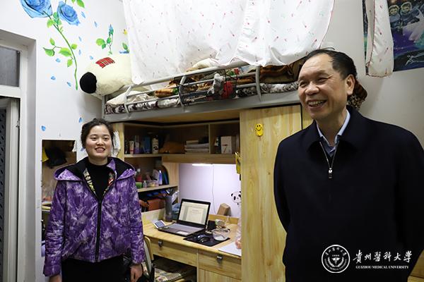 3月13日,校党委书记林昌虎走访了南校区学生寝室,学工部、保卫处、公共卫生学院、食品安全学院负责人陪同走访。