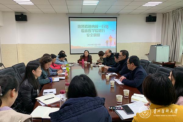 3月14日,副校长冉江舟带队到临床医学院进行安全调研工作。学生处处长赵平,发规处处长张兴,保卫处处长刘强,海外教育学院院长吴家红,学工部副处长肖绚,研究生学院学生科、分团委,临床医学院班子成员及全体学生管理工作者参加会议,会议由临床医学院党委书记周红主持。