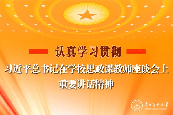 五要推进学校思想政治工作改革创新,把思政课办得越来越好。推进思政课理念思路、内容形式、方法手段等的创新,找准情感的“触发点”、思想的“共鸣点”,注重理论教育和实践活动相结合,让思政课成为学生真心喜爱、终生受益、毕生难忘的优质课程,引导学生扣好人生第一粒扣子,做合格建设者和可靠接班人,为贵州医疗卫生健康教育事业作出贡献!