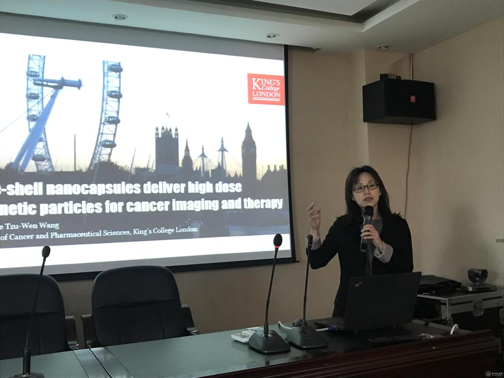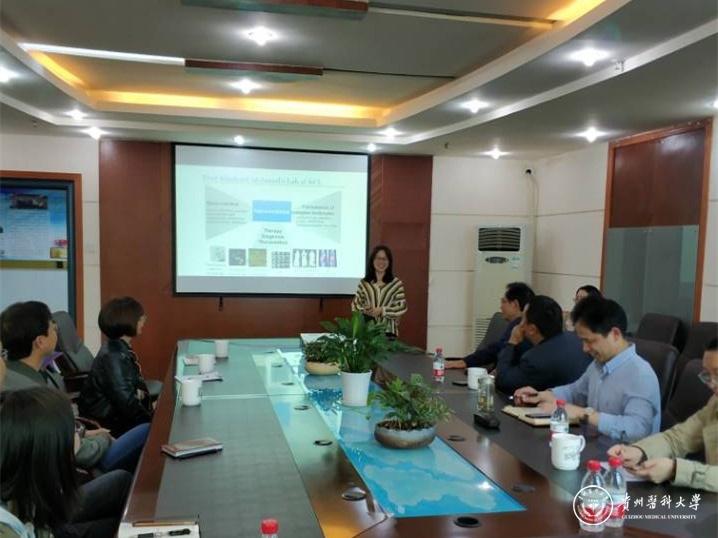来访专家18日上午在北校区行政楼七楼连廊会议室举行了学术报告会,双方对研究成果进行了交流学习。报告会由黄勇教授主持,Julie Wang博士和实验室李维维博士分别做了题为“Core-shell nanocapsules deliver high dose magnetic particles for cancer imaging and therapy”和“Material basis and mechanistic action ofDioscorea bulbiferaL. toxicity”的学术报告,双方就纳米制药技术在疾病诊断和药物治疗方面的研究进展以及中药肝毒性作用及其机制研究进行了充分的交流,此次交流对beat365纳米制药技术、中药肝毒性作用及其机制研究领域具有重要促进作用。