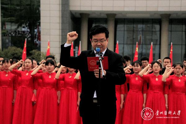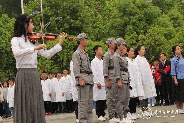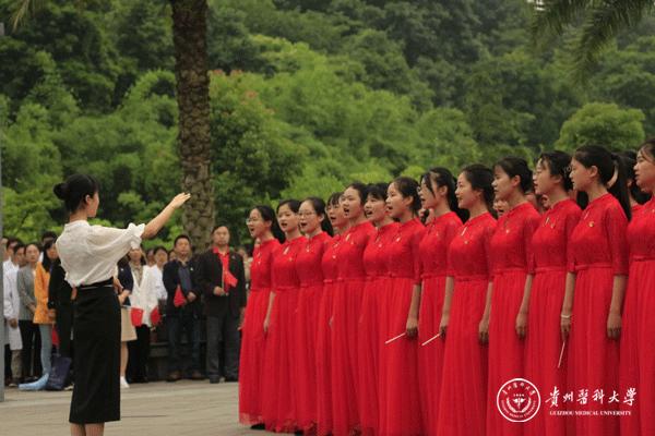 最后,全体师生合唱《歌唱祖国》,歌声缭绕,旋律振奋。爱祖国,爱贵医,每一位贵医人,必将不负初心,砥砺前行。