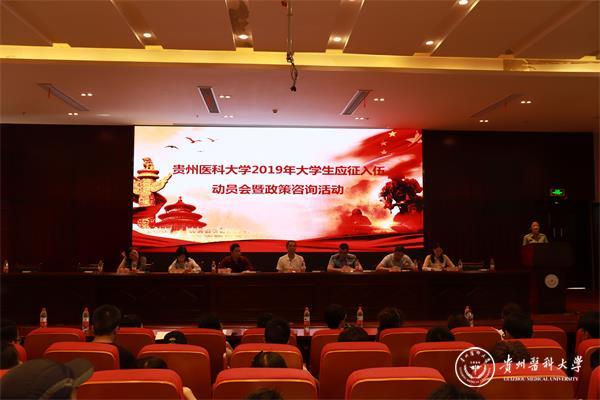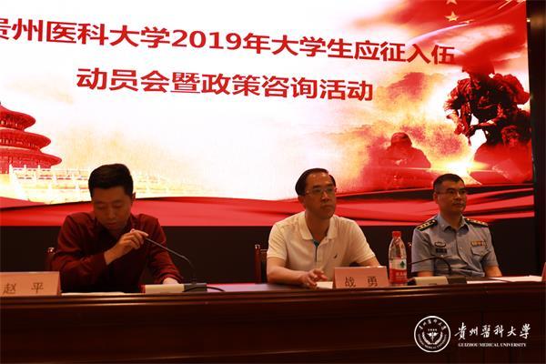 5月23日,beat3652019年大学生应征入伍动员大会暨政策咨询活动在南校区道德讲堂举行。校党委副书记战勇出席并讲话,花溪区武装部部长朱峰,学工部、教务处、学生资助中心有关负责人,各学院分管学生工作书记,全体辅导员及310名学生代表参加活动。