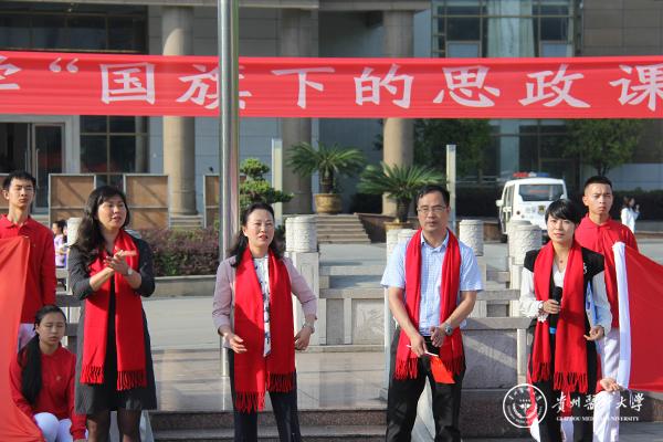 药学院党委书记高秀丽在国旗下为师生讲授思政课。她给大家解析了五星红旗的涵义和历史意义。要求青年学生们要牢记嘱托,在树立远大理想,热爱伟大祖国,担当时代责任,锤炼品德修为,练就过硬本领,勇于砥砺奋斗上下功夫,进一步增强社会责任感,提升个人综合素质和品德能力,为国家做贡献、为人民做实事。最后,祝愿学生们健康成长,以优异的成绩报效祖国。