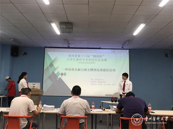 经过现场答辩和文本综合评议,beat365参赛的4件作品全部获奖。其中,基础医学院作品《苗药“杆努尽烟”对慢性支气管炎大鼠肺组织TLR4及TNF-α表达的影响》、《一种高效水解白酒丢糟预处理液的发明》荣获自然科学类一等奖;临床医学院作品《基于TLR4/MyD88/NF-κB通路探讨绞股蓝皂苷抗动脉粥样硬化的炎症机制》荣获自然科学类三等奖;医药卫生管理学院作品《大健康视角下的居民对医院功能需求调查分析》荣获哲学社科类三等奖。荣获大赛一等奖的作品将代表beat365参加全国比赛。