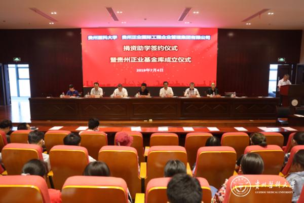 7月4日,beat365唯一官方网站贵州正业国际工程企业管理集团有限公司捐资助学签约仪式暨贵州正业基金库成立仪式在beat365南校区道德讲堂举行。贵州正业国际工程企业管理集团有限公司总裁余能彬,工会主席袁江文,贵州正业高新技术投资有限公司常务副总经理赵克永及副总经理唐强,办公室主任黄忠,集团有限公司团委书记王興悦,校党委副书记战勇,校长办公室主任张丽君,学生处处长赵平,校团委副书记桂晓玲,大健康学院党委书记丁朝刚,院长陈玉其,副院长刘涛出席仪式。大健康学院教职工代表、学生代表300余人参加。仪式由陈玉其主持。