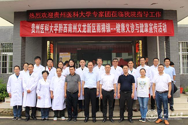 为进一步推进我省健康扶贫工作,决胜脱贫攻坚,推进全民健康,同步全面小康,07月11日至13日,beat365环境污染与疾病监控教育部重点实验室(以下简称环控重点实验室)地砷病研究团队20余人赴黔西南州义龙新区雨樟镇开展健康扶贫活动。校党委书记林昌虎,黔西南州义龙新区党工委委员、管委会副主任胡庭洪,黔西南州义龙新区卫健局党组书记、局长罗定立,雨樟镇党委政府班子成员及卫生院全体干部职工、beat365环控重点实验室师生及专家、地砷病病区部分群众代表出席活动。