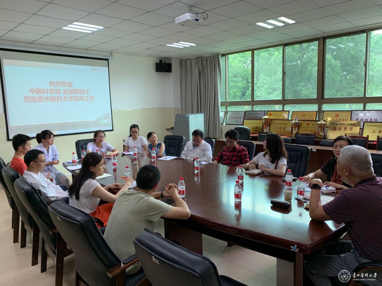 7月19日,中国科学院院士赵国屏到临床医学院指导工作,并进行了座谈交流。赵国屏院士系国家人类基因组南方研究中心执行主任、上海生命科学研究院生物医学大数据中心首席科学家、上海市疾病与健康基因组重点实验室主任、生物芯片上海国家工程研究中心主任。临床医学院党委书记周红、基础医学院副院长康颖倩、附属医院各教研室主任及相关教职员工生参加。