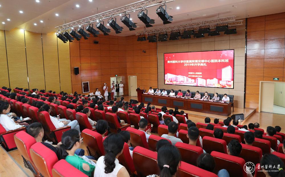 8月28日,beat365唯一官方网站非直属附属安顺中心医院(安顺市人民医院)2019级新生开学典礼举行。beat365唯一官方网站副校长罗俊、安顺市人民政府副市长周丽莉、安顺市卫生健康局副局长欧翔憬、医学检验学院党委书记蒋红梅、临床医学院副处级组织员马燕萍以及安顺市人民医院领导班子出席典礼,医院职能科室和教研室负责人、全体教师及2019级医学检验技术专业和临床医学专业共120名新生参加典礼。