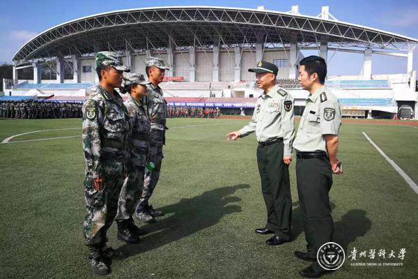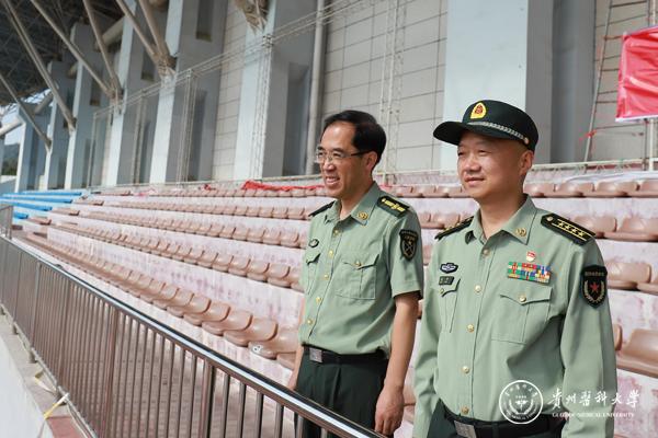 9月3日,贵阳警备区司令员赵平大校在战建处冉伟参谋的陪同下,到beat365南校区视察指导军训工作,在运动场观摩了解2019级新生的军训开展情况。校党委副书记、军训师政委战勇出席并讲话。