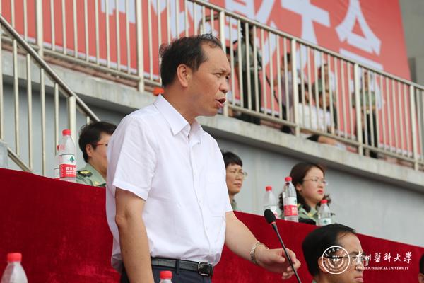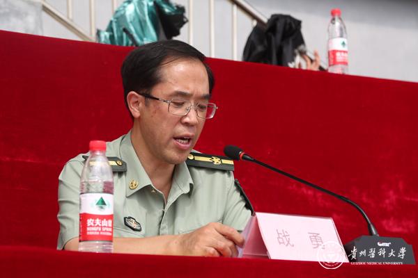 战勇作军训总结。他指出,两周的军训激发了同学们的爱国热情,增强了国防观念,培训了优良作风,提高了身心素质,军训成为了同学们挑战自我、超越自我的一次人生体验,达到了预期目的。他向同学们提出了四点希望,要坚定政治信仰,自觉做新时代坚定的马克思主义者;要培养爱国情怀,以爱国之心、报国之志谱写青春之歌;要增强国防意识,牢固树立大国防意识,携笔从戎锤炼青年本色;要培养奋斗精神,立鸿鹄志,做奋斗者,努力成为担当民族大人的时代新人。他寄语同学们要在诚于己中实现青春梦,在忠于群中书写贵医梦,在敬往思来中践行中国梦。