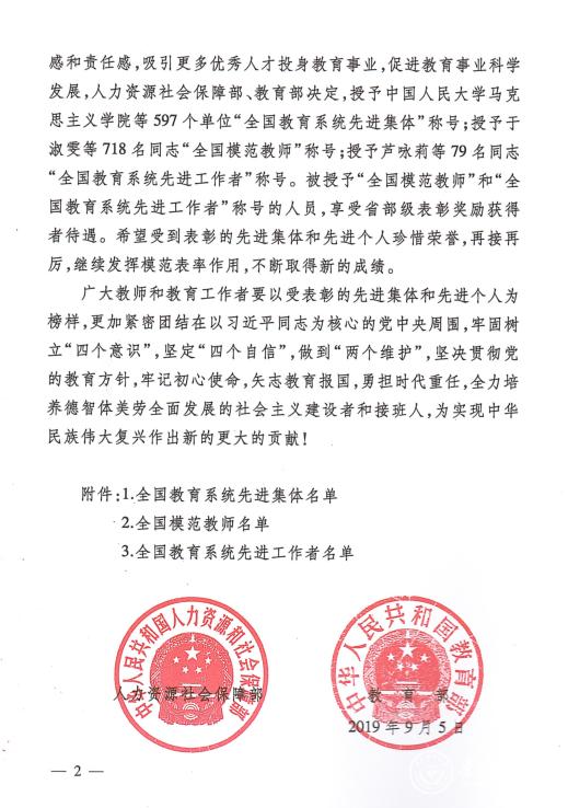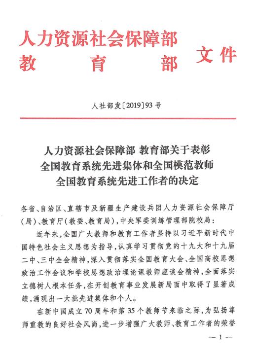 在第35个教师节来临之际,为弘扬尊师重教的良好社会风尚,进一步增强广大教师、教育工作者的荣誉感和责任感,吸引更多优秀人才投身教育事业,促进教育事业科学发展,国家社会保障部、教育部下发集中表彰了一批全国教育系统先进集体和全国模范教师全国教育系统先进工作者,beat365教务处处长温小军荣获“全国教育系统先进工作者称号”。